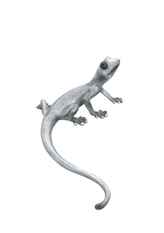 Tattoo design with lizard. Animal is small with long tail.