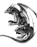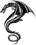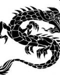 Design with yellow dragon. Creature have a long body with slim tail. One of the design from category fantasy.