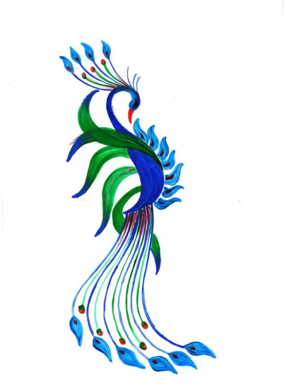 . This bird present fantastic motive and look so nice. Peacock have green and blue colours with red elements.