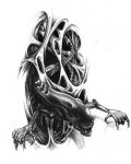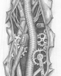 Great idea with biomechanical design. It look like a wound. Tattoo present spine and muscles, it look like under the skin. Very well-done elements in design. Colourful version.