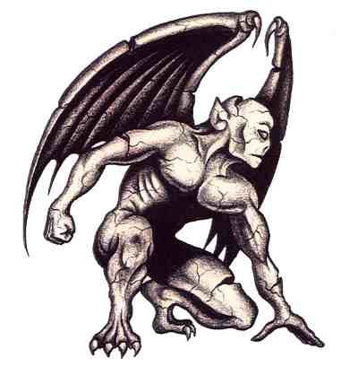Demon on this photo look as ugly creature from hell. On his foot are claws and on back big wings.