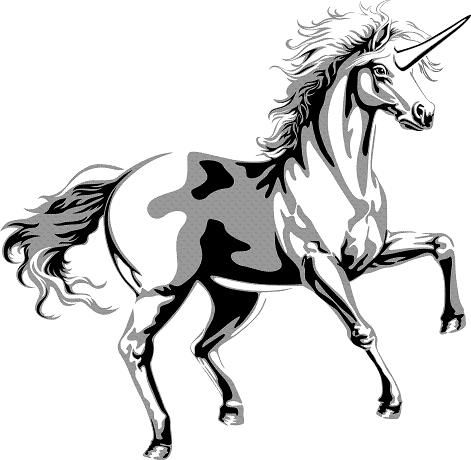 on this picture look magic, design have white, black and grey shades. On the head animal have big horn.