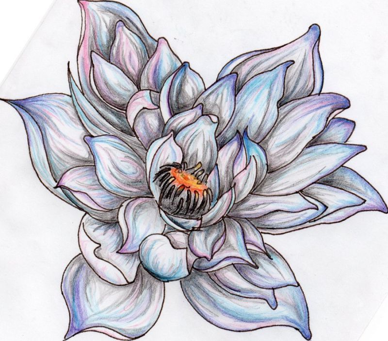 Enormous flower of lotus. Petals in various size and shading colours. This picture is great tattoo design with flower.