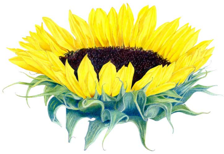 This design look wonderful, plant has great sunny colour. Yellow petals are around big black centre. Below petals are leafs in green colour. Sunflower is fantastic proposition on tattoo.