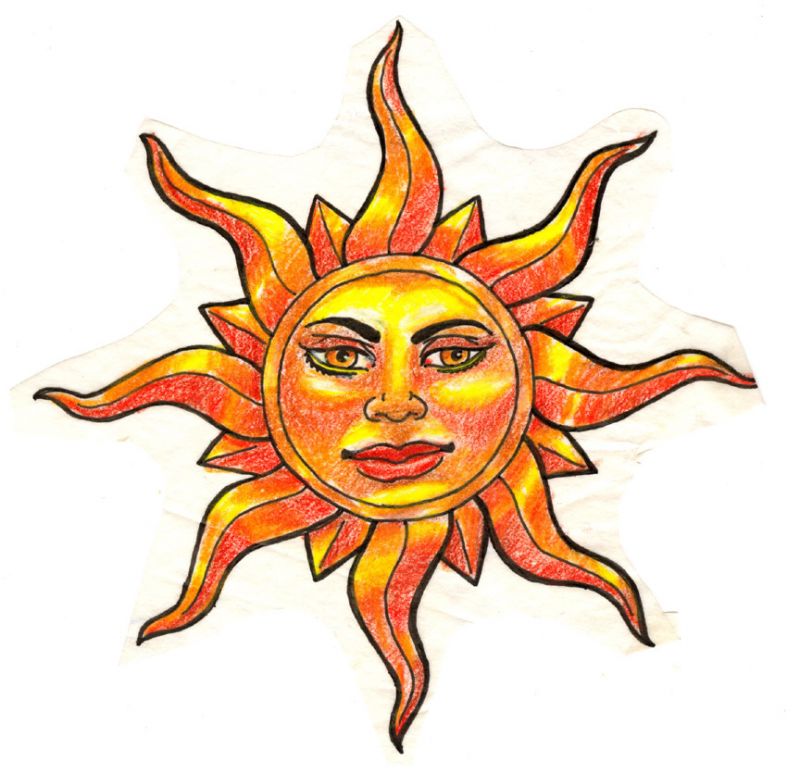. This pattern have red and yellow colours. In many part is shading. Sun have red lips.