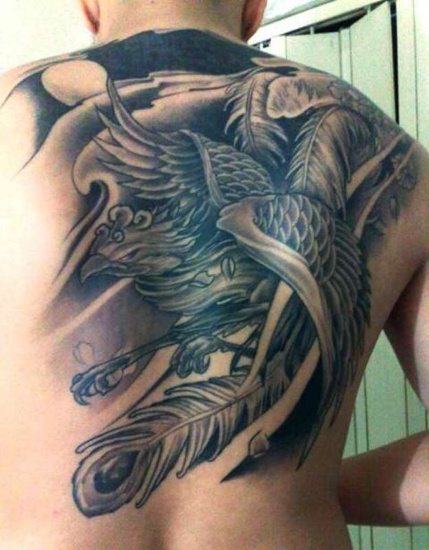 Black phoenix on back