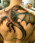 Awesome tattoo on back with death motive. Many crosses and skulls.