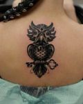 Tattoo on a woman's body showing the cage and birds fluttering around her .