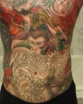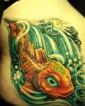 Awesome tattoo in biomech styling with cards under the skin. colourful version of tattoo.