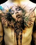 Real good tattoo in big size. Various motuves: aries, skull and patterns.