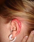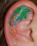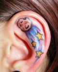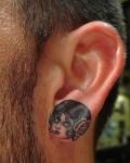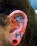 Example with funny design. Photo present tattoo with Wally. It's on the ear.