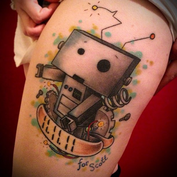 Tattoo on hip with funny robot.