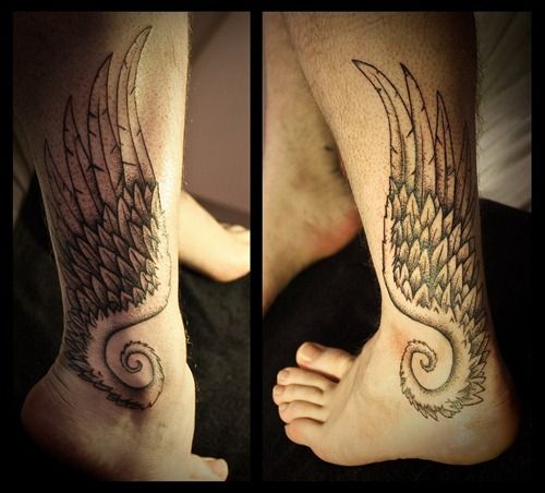 . It's a black wing with curly end. The same project on two ankles look amazing.