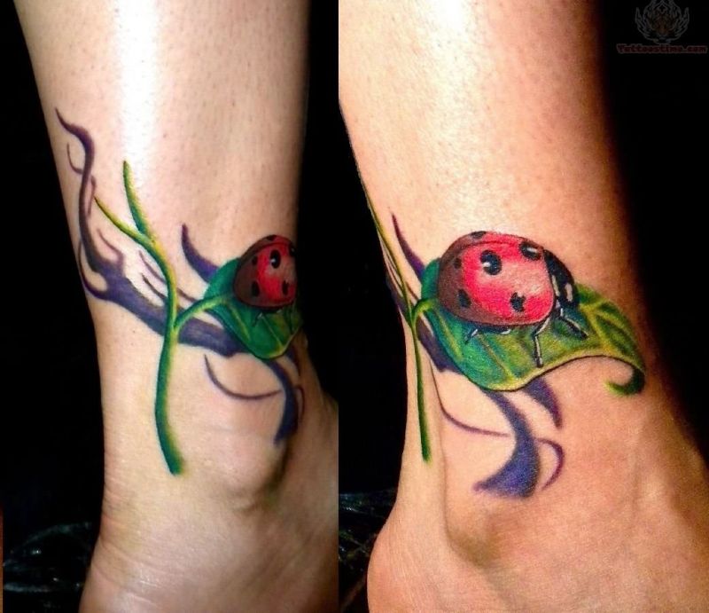 look like alive. Colourful version of tattoo on ankle.