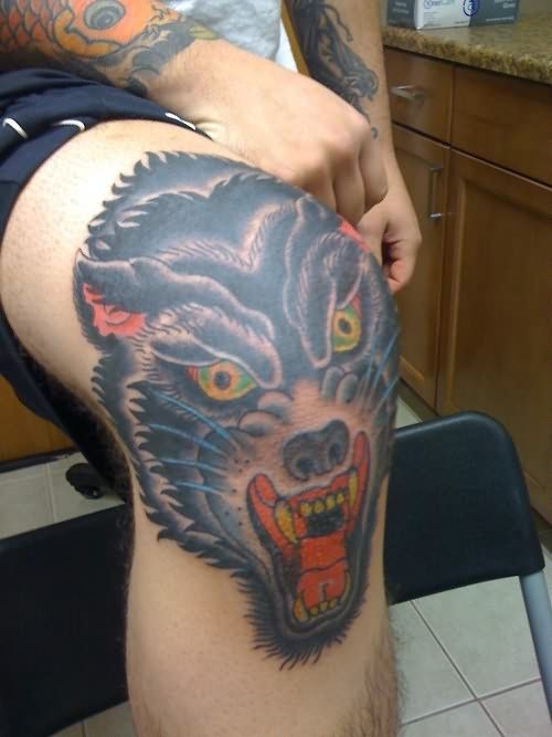 Head of wolf on knee