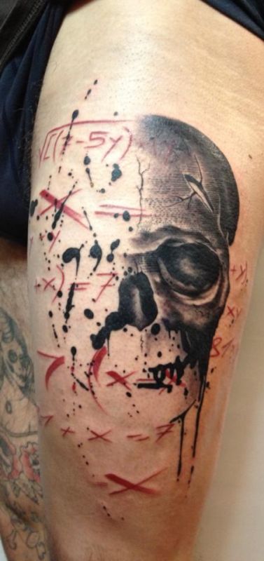 Original tattoo with skull. It's a half part of skull, second size are numbers.