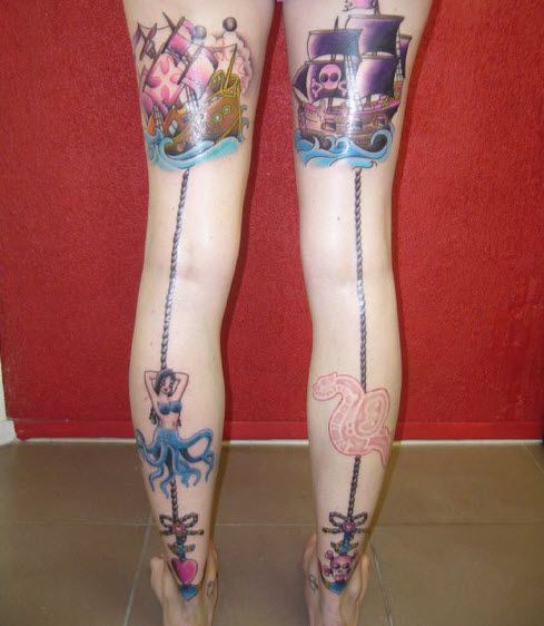 Unique tattoo with boats