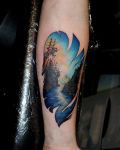 Amazing tattoo with biomechanical project. Element in colours look so good.