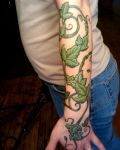 Awesome owl tattoo with grey and blue plumage. Bird look so good. Tattoo on hand.