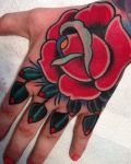 Nice tattoo with flower on wrist. It's a lily flower in pink colour of petals.